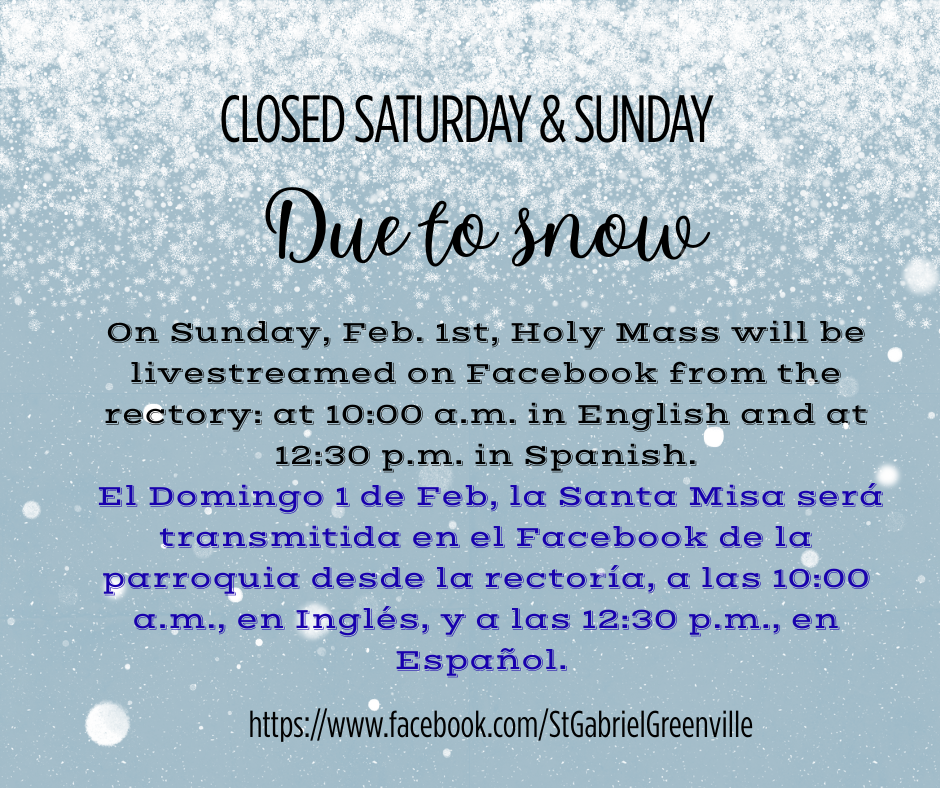 Please be sure to check all Flocknote messages sent to you, or view our Church Facebook site, for published notices